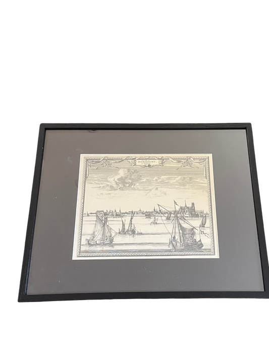 Vintage Etching in Black Oak Frame 16" x 20"