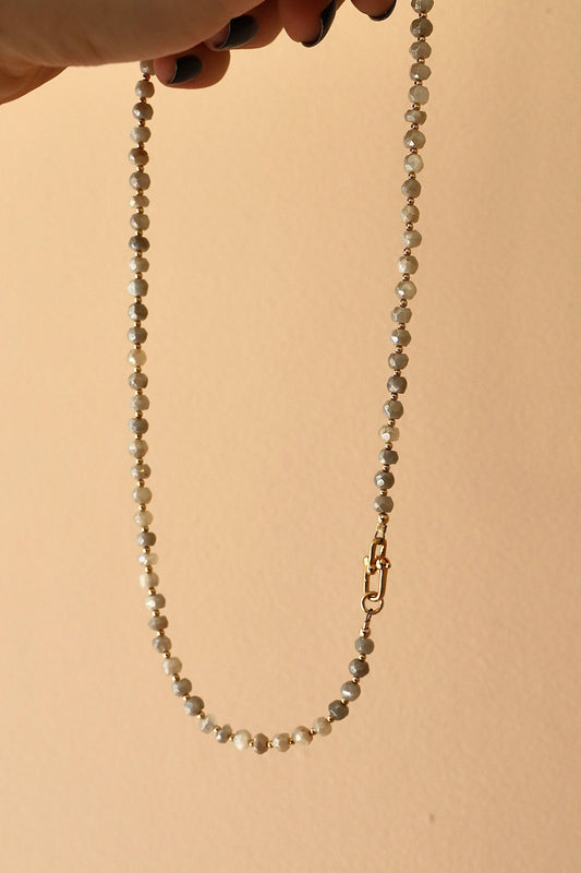 GREY SILVERITE BEADED NECKLACE